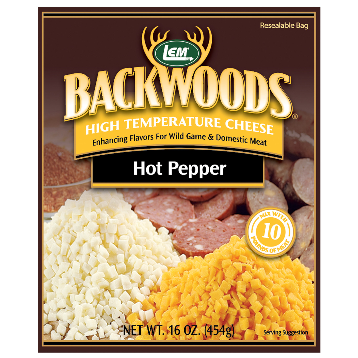 To use, add to your meat in a 1:10 ratio (1 lb. cheese to 10 lbs. of meat) after the second grind, stuff, and cook as usual.