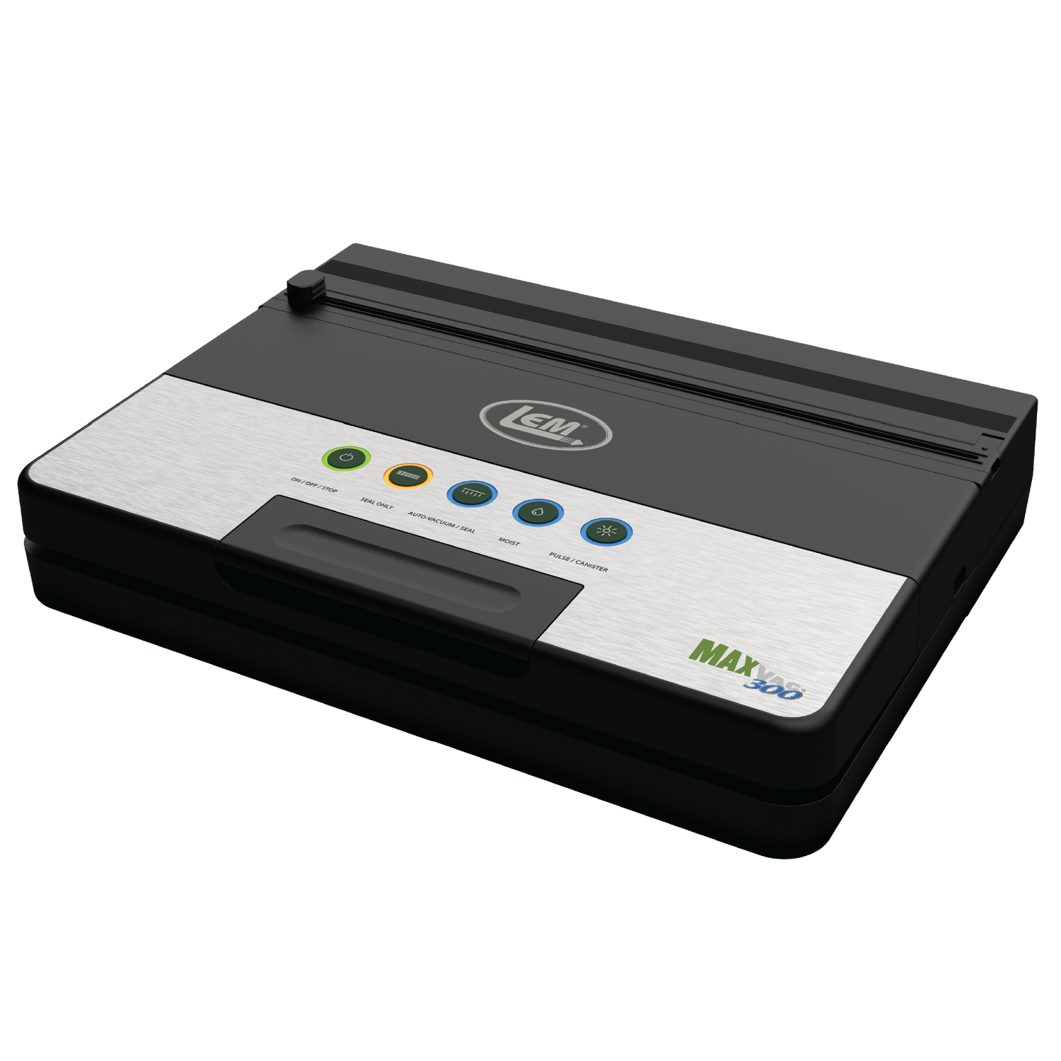 The LEM MaxVac® 300 Vacuum Sealer locks in freshness and prevents freezer burn so you get the most from every harvest. Built for hunters, processors, and serious home chefs, it preserves nutrients and keeps food tasting like it should. Silicone gaskets clean easily, resist compression, and last longer than foam gaskets. The magnetic roll holder with built-in cutter makes bag prep fast and can be removed for two-person operation. Intuitive buttons and lights guide you through sealing, and the vacuum chamber lifts out for easy cleanup. Use the canister port to seal external containers and accessories (hose attachment and canisters not included). When you’re done, store the MaxVac 300 upright to save counter space. Respect the animal. Respect the process. MaxVac 300 makes it simple.